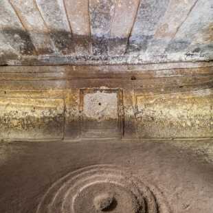 Tombe scavate nella roccia calcarea con ambienti interni articolati.