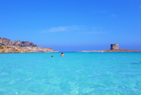 A pochi chilometri da Stintino si trova la celebre Spiaggia La Pelosa, conosciuta per la sabbia bianca e il mare trasparente.
